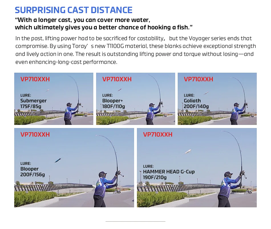 En el pasado, el poder de elevación tuvo que sacrificar la lanciabilidad, pero la serie Voyager termina ese compromiso. Al utilizar el nuevo material T1100G de Toray, estos espacios en blanco logran una resistencia excepcional y una acción animada en uno. El resultado es una potencia de elevación y un par excepcionales sin perder, e incluso mejorar el rendimiento de lanzamiento largo.