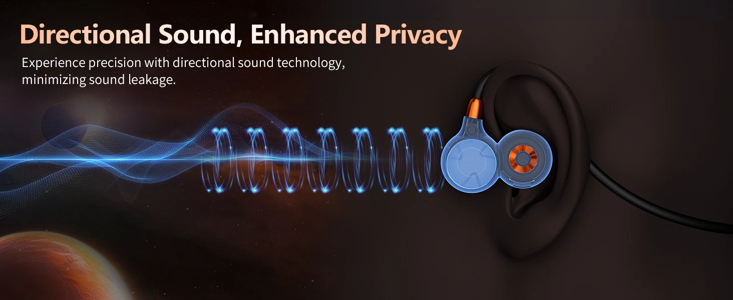 La tecnología de sonido direccional garantiza que el audio se suministre a sus oídos en ángulos específicos, minimizando las fugas de sonido y brindándole una experiencia de sonido rica e inmersiva.