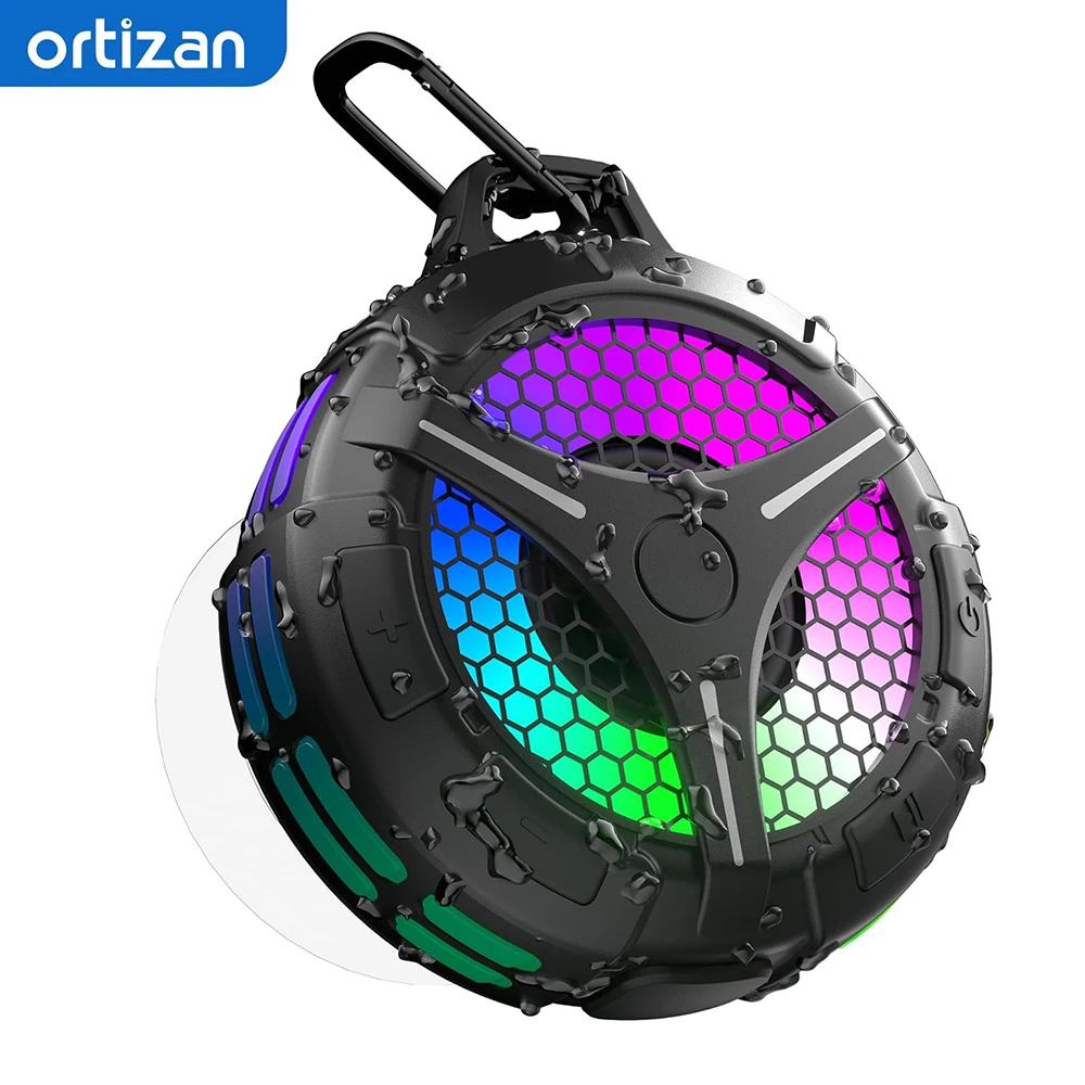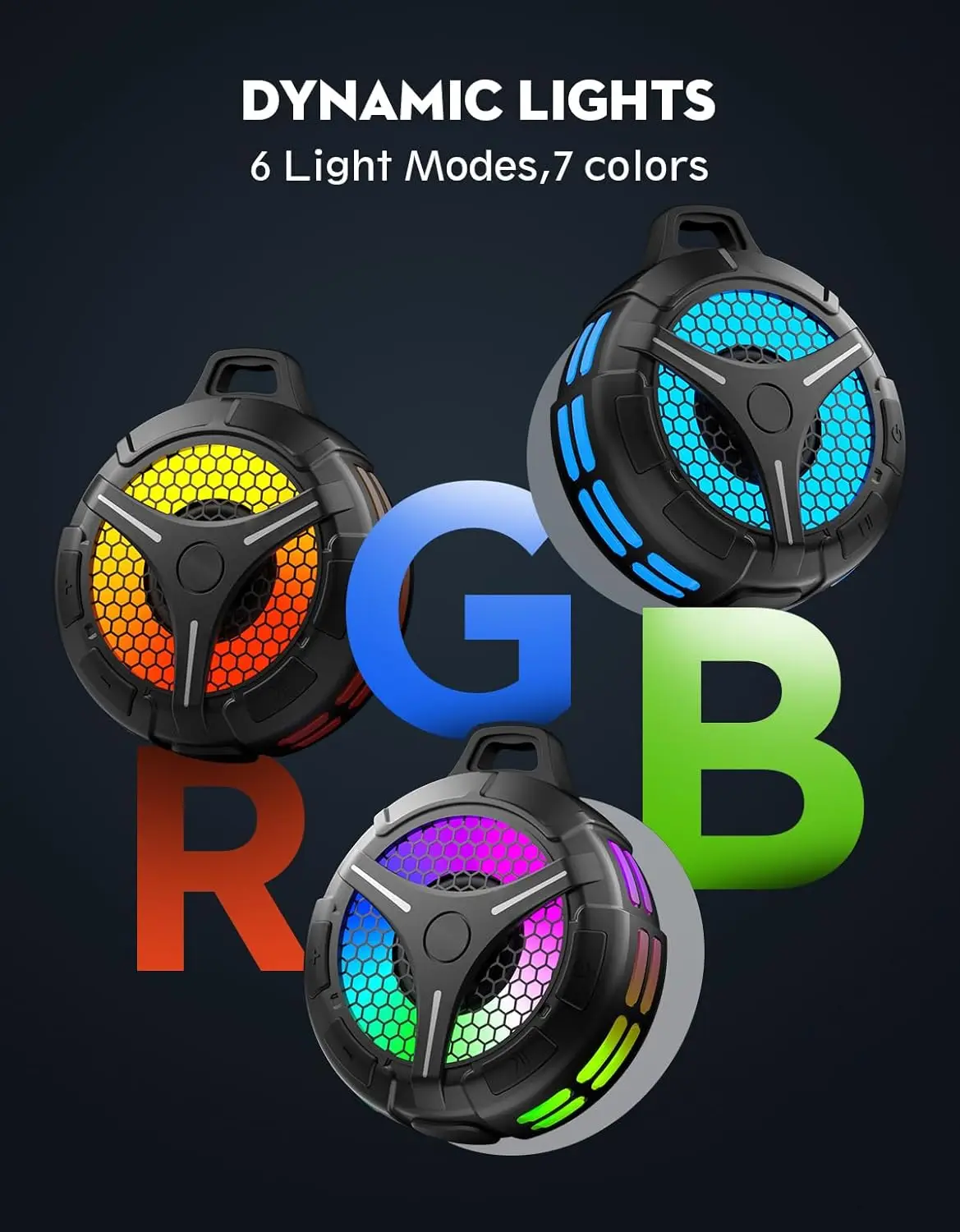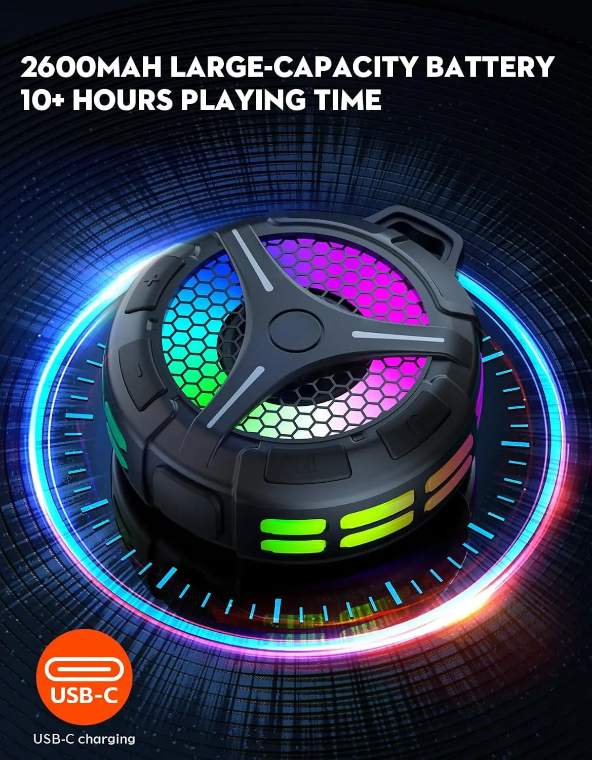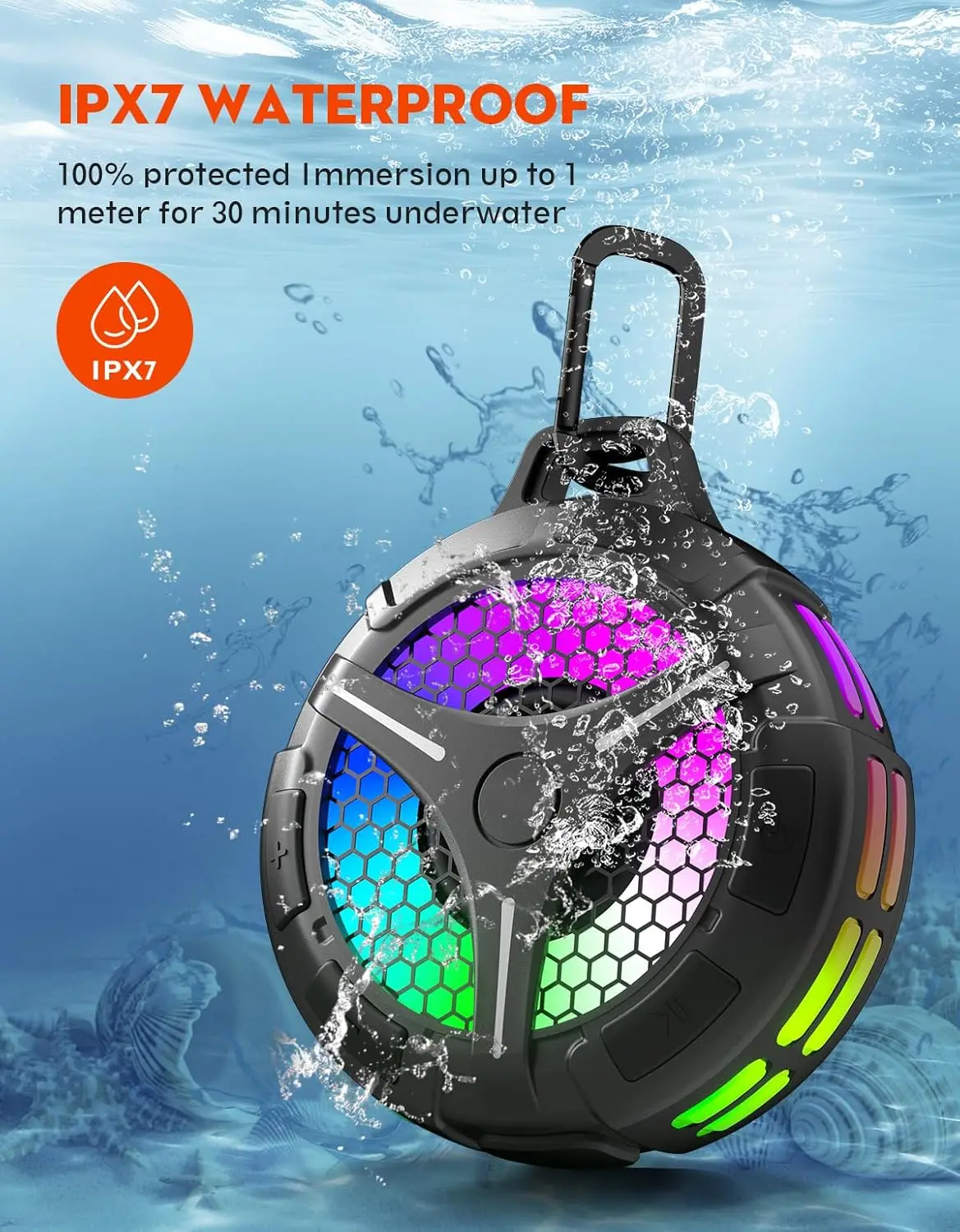 Altavoz Bluetooth, altavoz de ducha con sonido estéreo, altavoces impermeables IPX7, altavoz portátil con ventosa y gancho, luz LED, pequeños altavoces inalámbricos para fiestas al aire libre, baño en la playa, negro