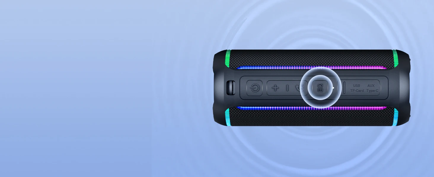 Los tres modos de EQ profesionales de voz, pop y graves, diseñados por un equipo de ingeniería de primer nivel, permiten que el altavoz emita simultáneamente agudos claros y brillantes, graves profundos y ricos e incluso efectos de audio Hi-Fi profesionales que te hacen sentir como si estuvieras allí en persona.¡Siempre podrás disfrutar de una experiencia de audio realista que crea el ambiente de fiesta al fuego!
