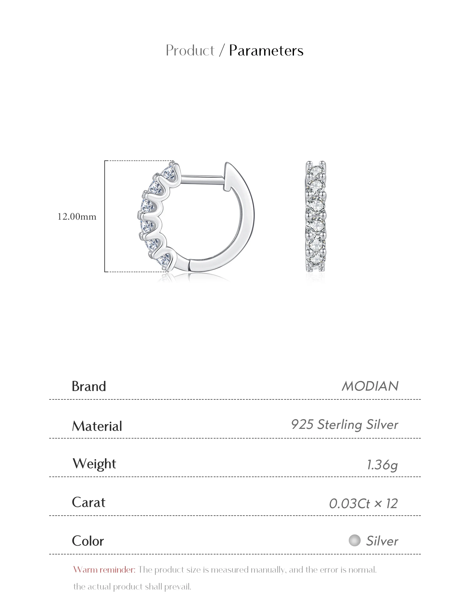 Peso/pares de pendientes?Aprox.1,36 gramos