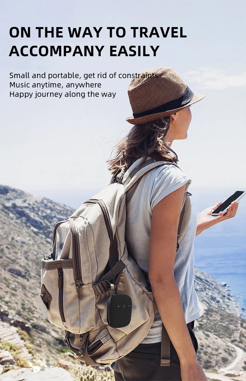 Compacto y liviano, este mini altavoz es el compañero ideal para los amantes de la música en movimiento y cabe fácilmente en cualquier mochila.