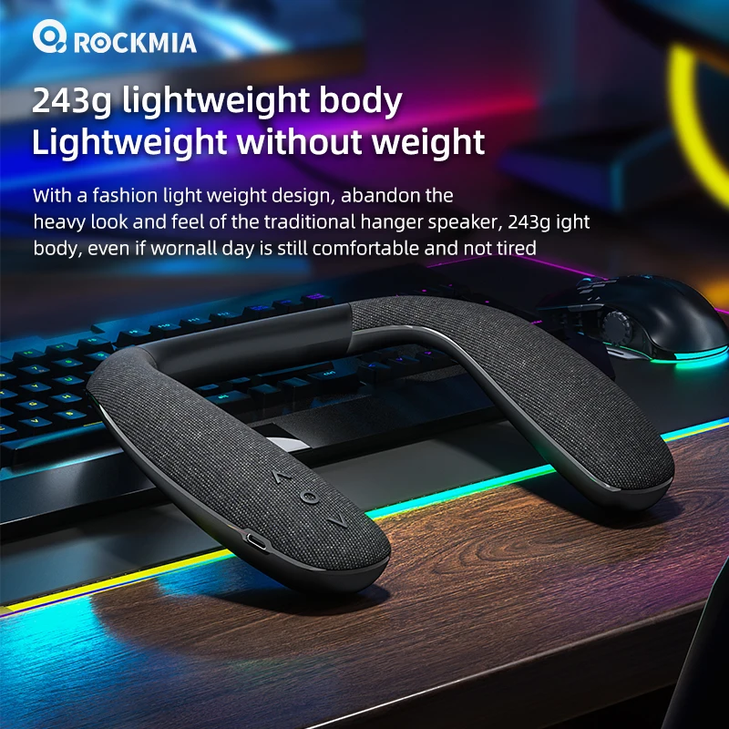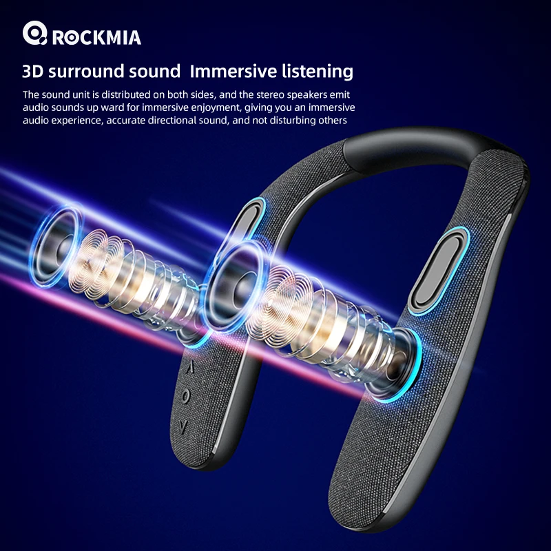 El altavoz con banda para el cuello Rockmia EBS-908 ofrece una potente experiencia de graves en un diseño portátil, perfecto para entretenimiento mientras viaja.