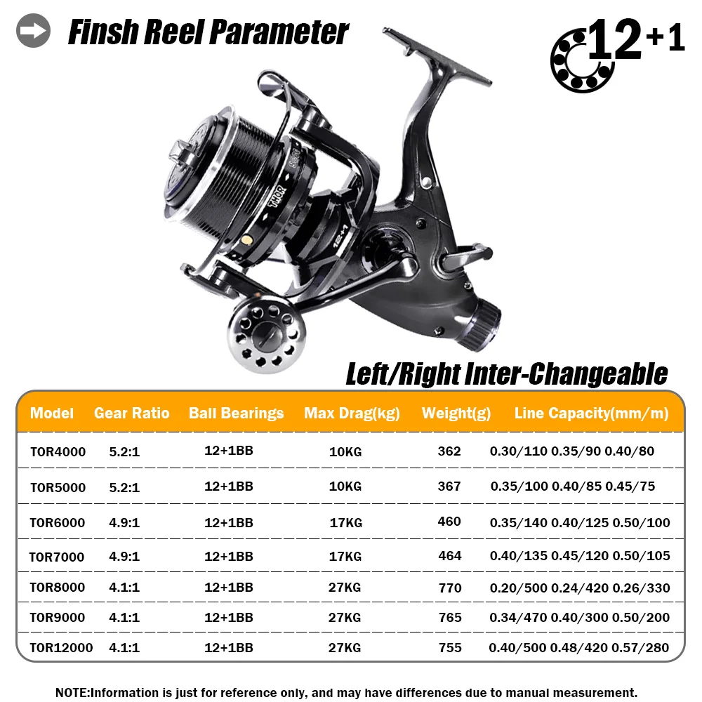 Nuevo carrete de pesca Carretes giratorios de carpa Max doble arrastre 27kg 12 + 1BB Carretilla De Pesca Accesorios Mar Peche En Mer Sal/agua dulce