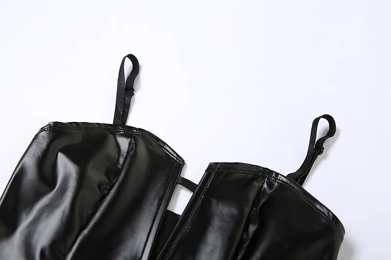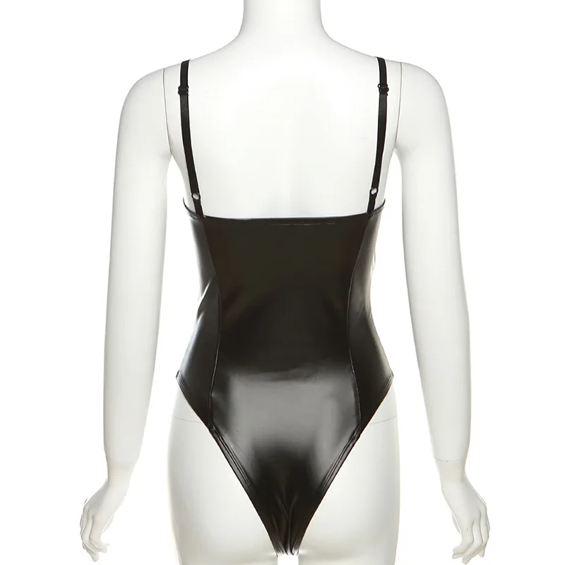 Lencería de PU de Color sólido de tendencia de moda, nuevo mono ajustado con tirantes sin espalda, traje informal de una pieza sin mangas para Festival