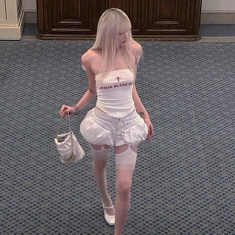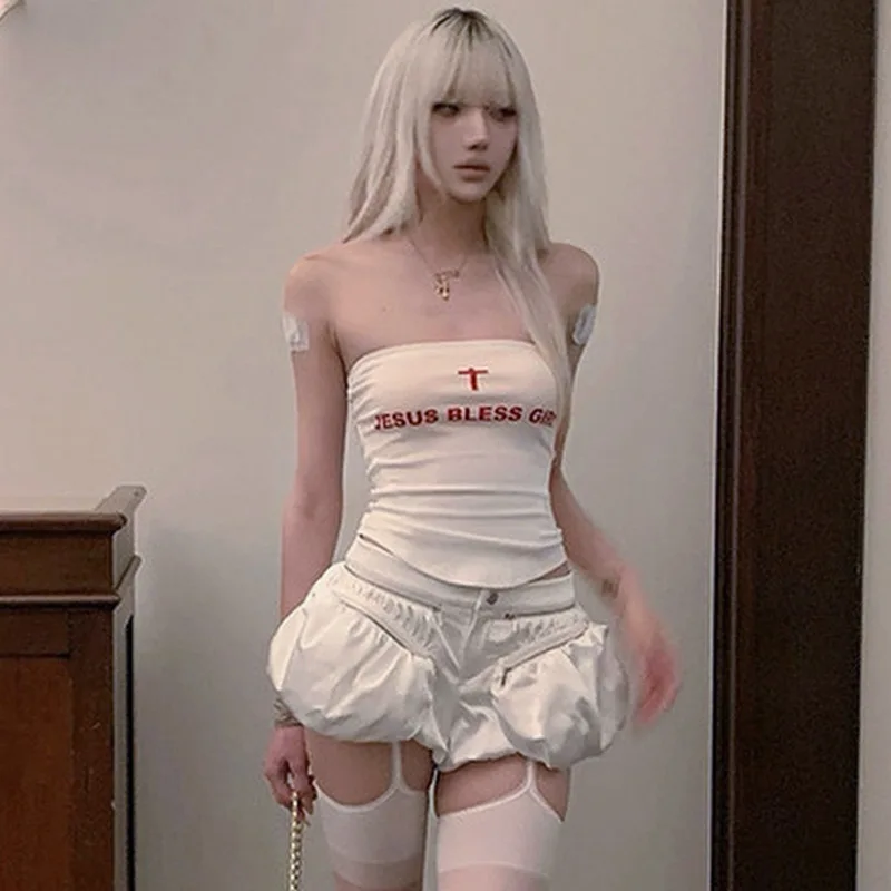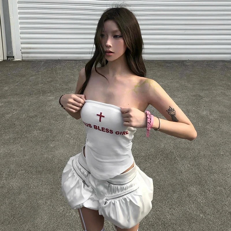 Top de tubo con estampado de letras, sujetador sin tirantes Sexy, corpiño, Bralette sin mangas para mujer, trajes de verano, Brasier Sin Tirantes Y2k, ropa