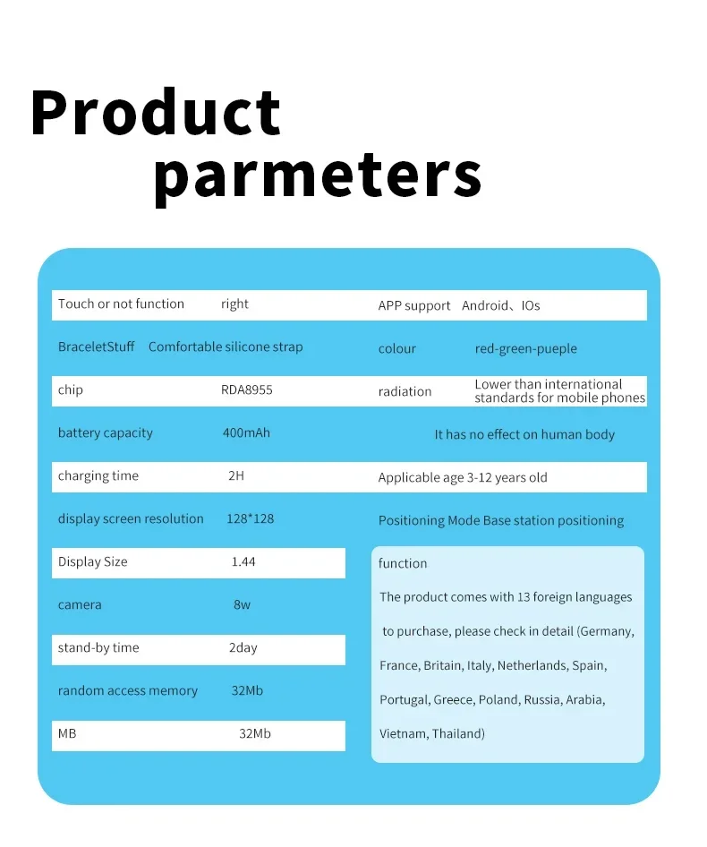 Localización LBS, seguimiento, monitorización remota, agenda telefónica, intercomunicador, trayectoria histórica, reloj despertador, GEO Fence, alarma de emergencia SOS, alarma de batería baja, apagado remoto, juego, cámara, galería, linterna.