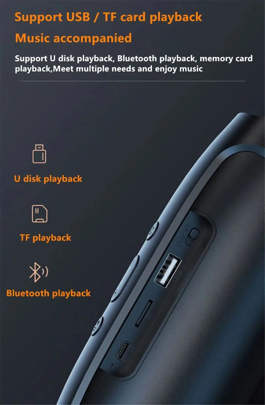 • Reproducción USB TF:Reproduce tus canciones favoritas directamente desde una unidad USB sin necesidad de dispositivos adicionales.