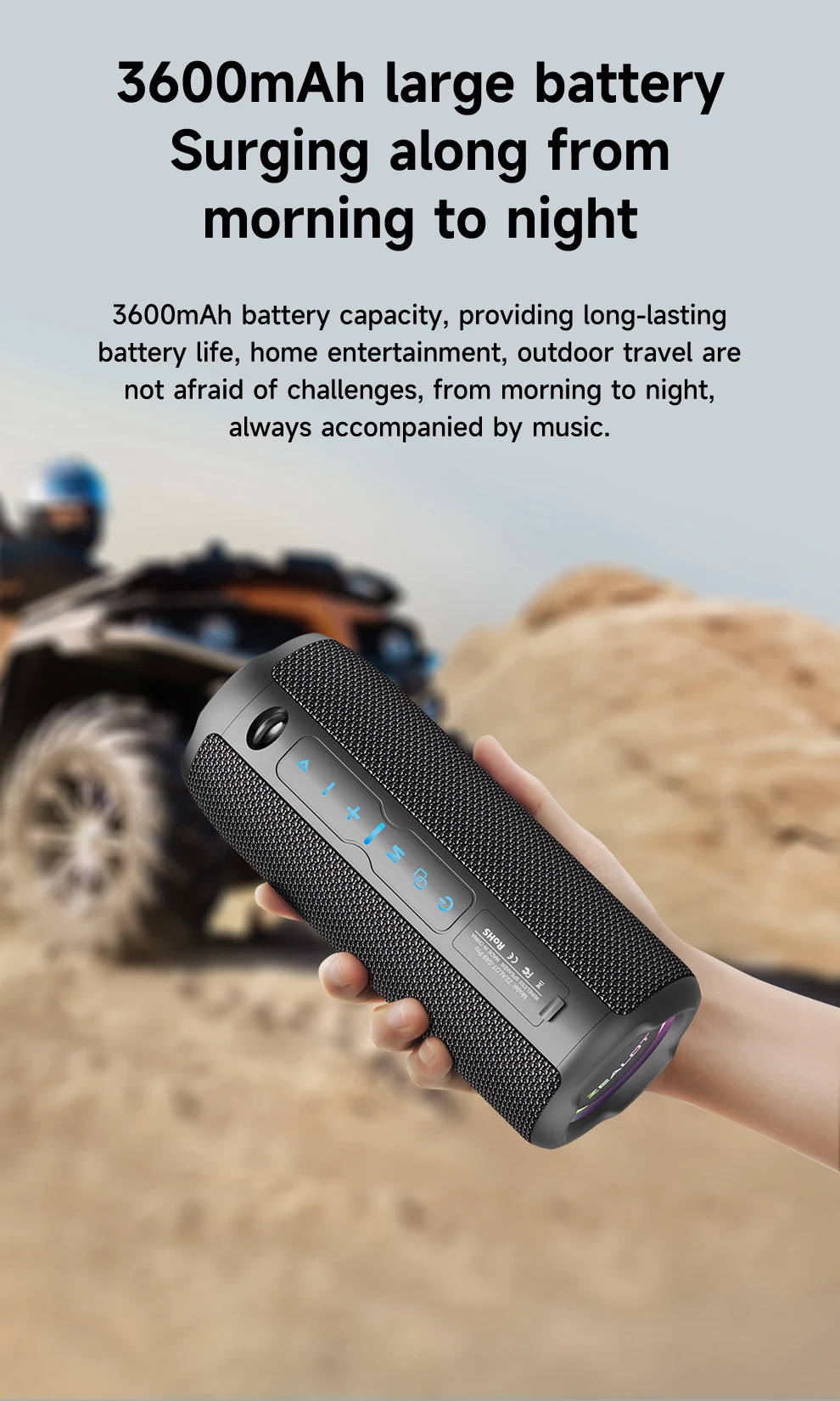 • IPX6 impermeable :Este altavoz es resistente al agua, lo que lo hace perfecto para actividades al aire libre o derrames accidentales.