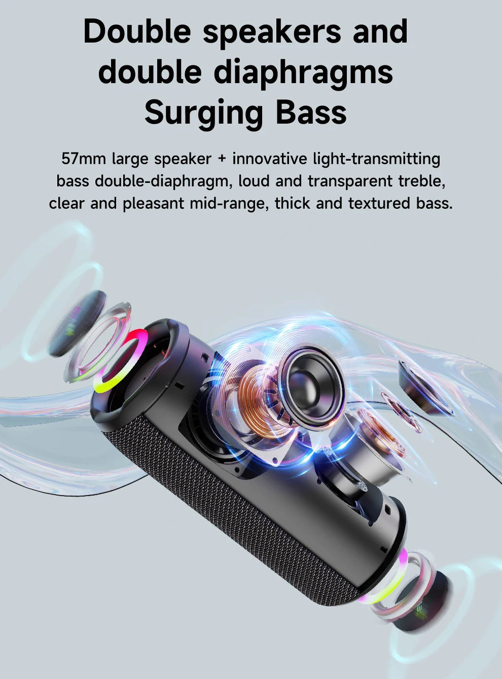 Full Bass Stereo: los altavoces Bluetooth proporcionan sonido envolvente, graves ricos, mediados de alta y sonido dinámico. Incluso al máximo volumen, no habrá sonido roto, al igual que un concierto en vivo.