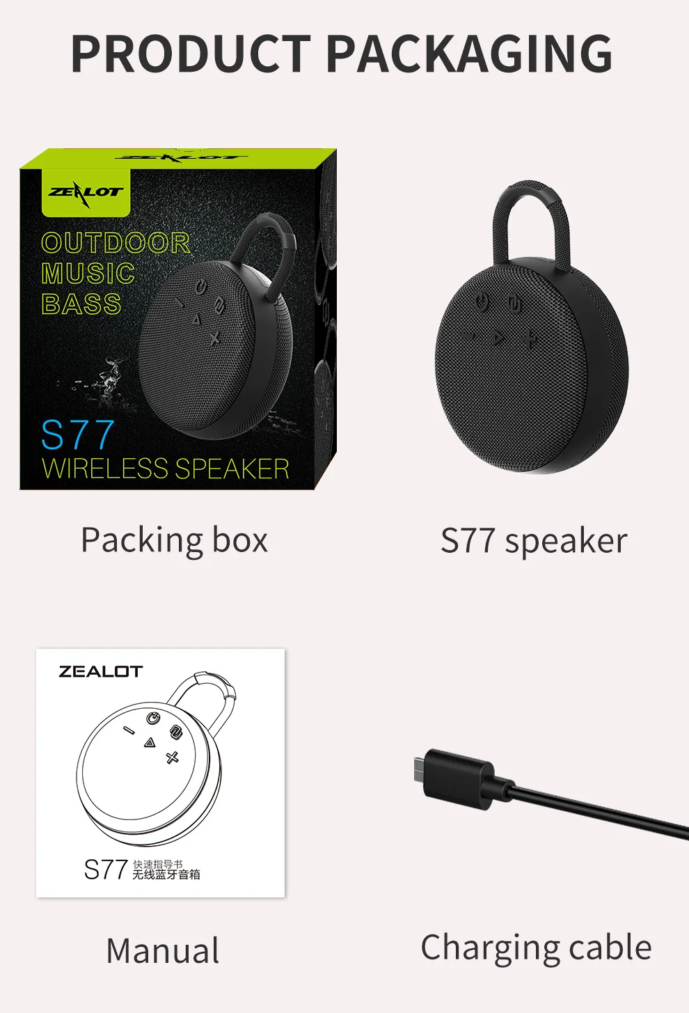 • Portátil :El altavoz Bluetooth inalámbrico ZEALOT S77 es ligero y fácil de transportar, lo que lo hace perfecto para actividades al aire libre.
