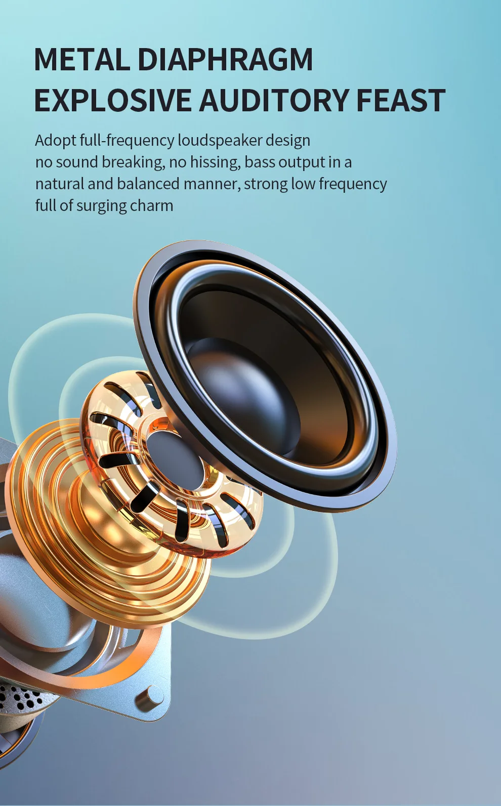 Los altavoces Full Bass Stereo-Bluetooth ofrecen un sonido inmersivo, bassties ricos, sonido promedio alto y dinámico. Incluso al volumen máximo, no habrá sonido roto, como en un concierto en vivo.